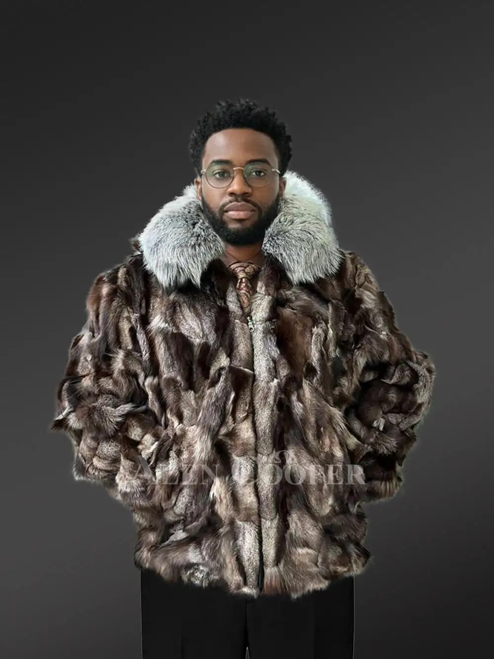 Men’s 2 Tone Fox Fur Bomber Jacket