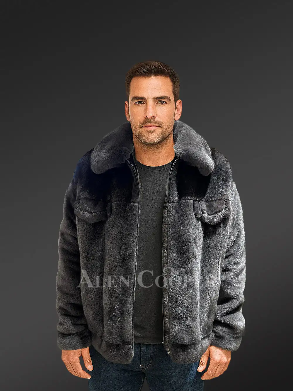 Men’s Stylish Blue Silver Fox Bomber Jacket