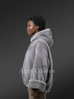 Mink Bomber Jacket with Hood –Look Elegant in this Pristine Jacket