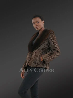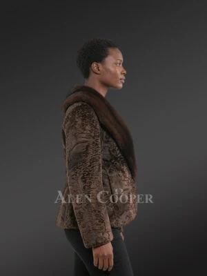 Women’s Lapel Collar Blazer in Persian Lamb with Mink Collar Accent