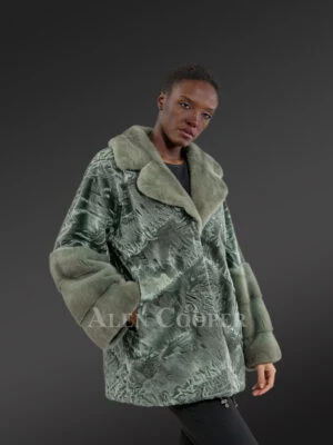 Women’s Persian Lamb Coat with Mink Collar Accent and Layered Mink Sleeves