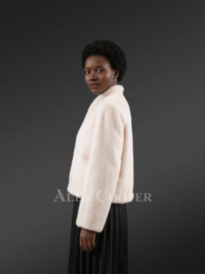 Women’s Lapel Collar Blazer in Persian Lamb with Mink Collar Accent in Beige