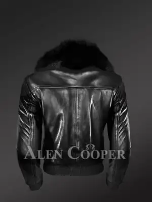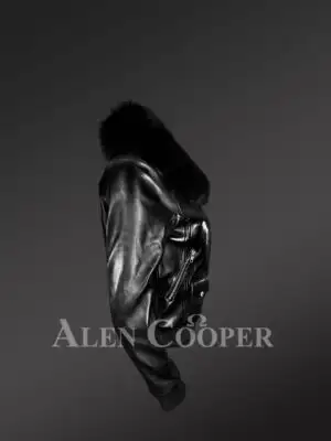 Women’s Slim Fur Bomber with Detachable Fox Fur Collar