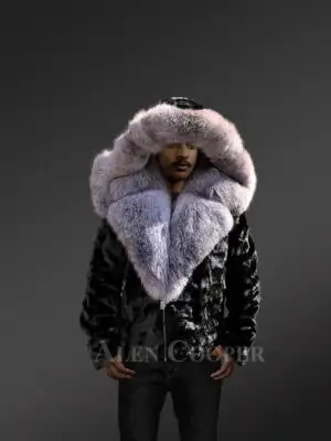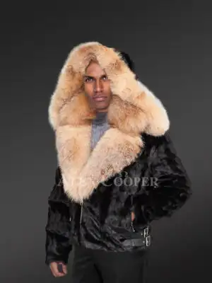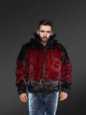 Mens Mink Bomber with Hood in a Vivid Color Combination
