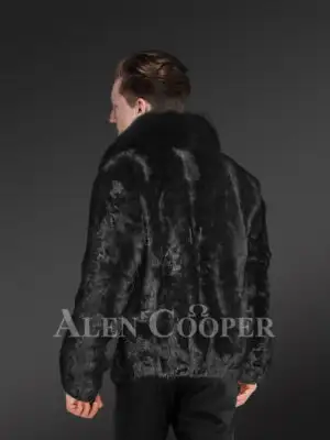 Men Bomber of Mink Fur in Stylish Non-Uniform Texture