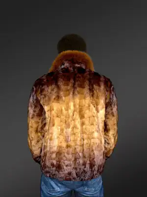 Mink Fur Bomber Jacket with Hood for Men in Golden & Dark Brown Contrast