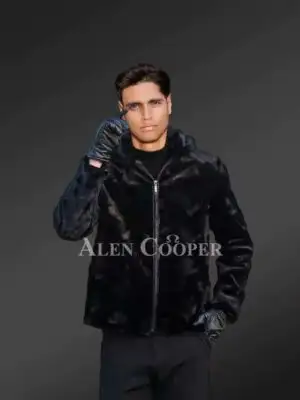 Mink Fur Jacket for Mens with Hood