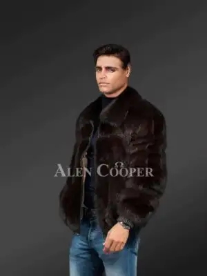 Mink Fur Bomber for Men with Zip-Up Front