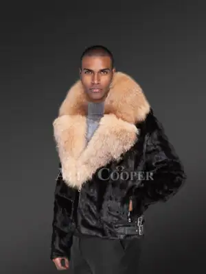 Black Mink Biker Style Jacket for Men