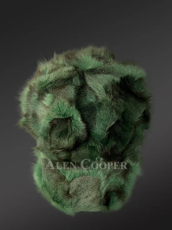 Mens Rabbit Fur Baseball Hat in Green Exuding Luxe Radiant Warmth