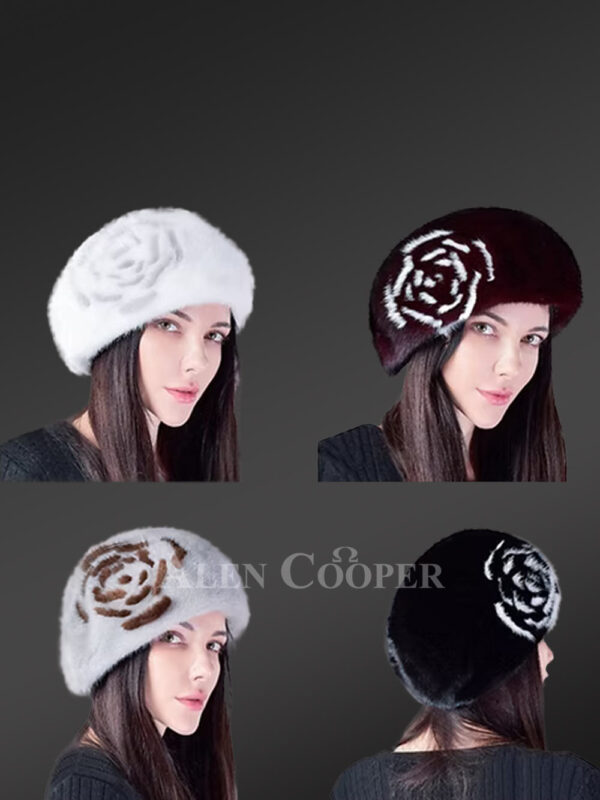Mink Accented Womens Beret Hat Looks Ravishing in All Four Shades