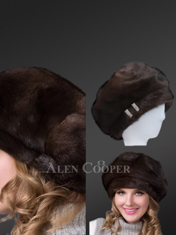 Mahogany Mink Riding Hat with Side Decoration Accent for Urbane Women