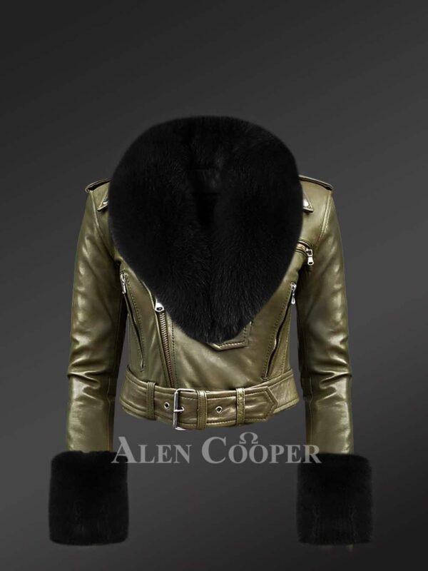 Genuine Leather Jackets for Divas with Removable Fur Collar and Hand Cuffs