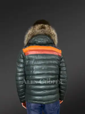 Down Leather Jacket with Fur Trims Accentuating the Hood