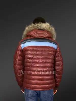Goose Down Puffer Bomber for Men with Raccoon Fur Accents