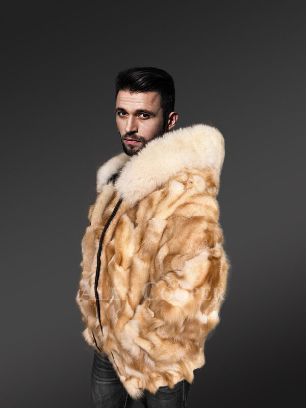 A fox fur hood frames the face beautifully, offering both luxury and functionality. Whether lined entirely in fur or featuring fox trims, these hooded bombers are ideal for men who want a balance between casual and high-fashion aesthetics.