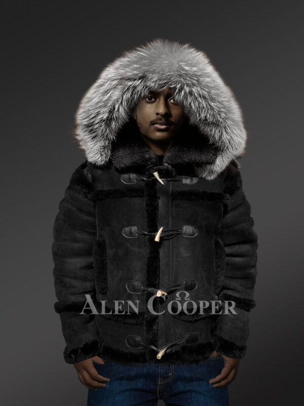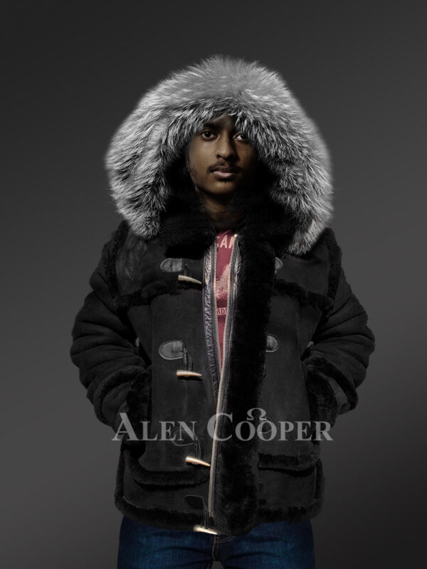 Mens Black Shearling Coat with Hood – Exceptional Warmth & Exquisite Looks