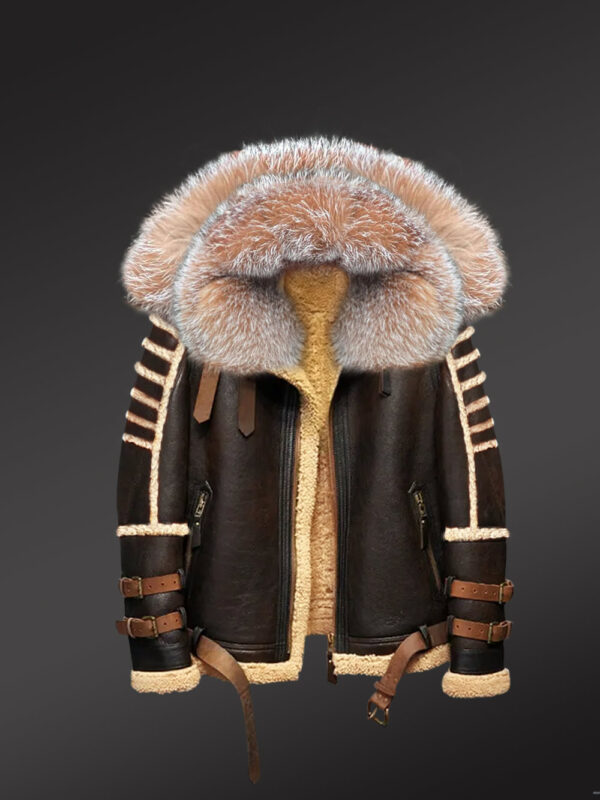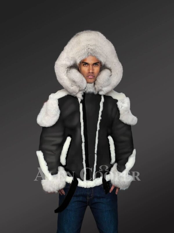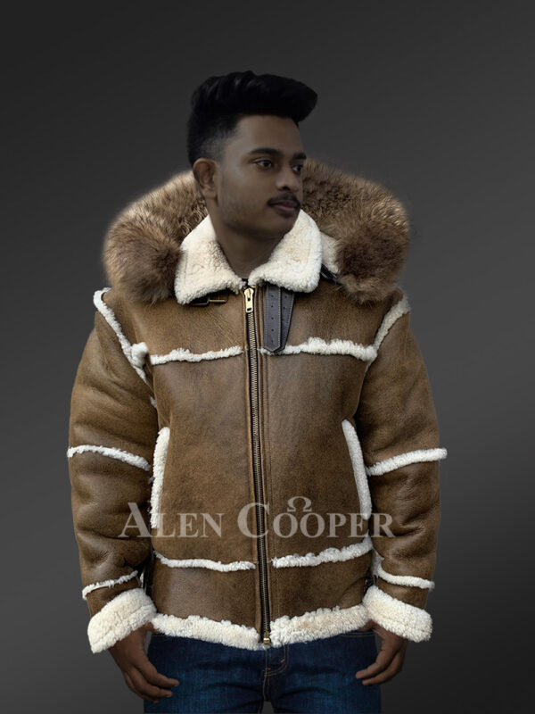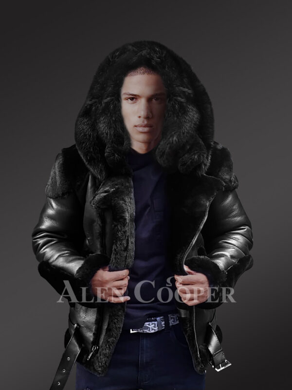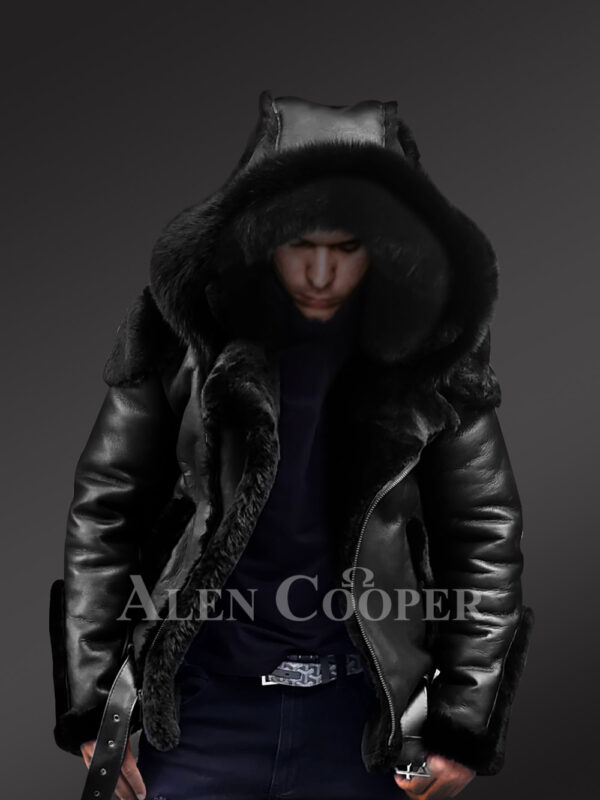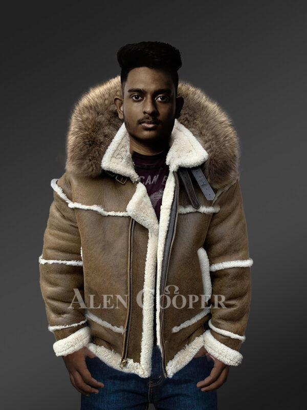 Mens Shearling Jacket with Fur Hood for Best Protection in Winter