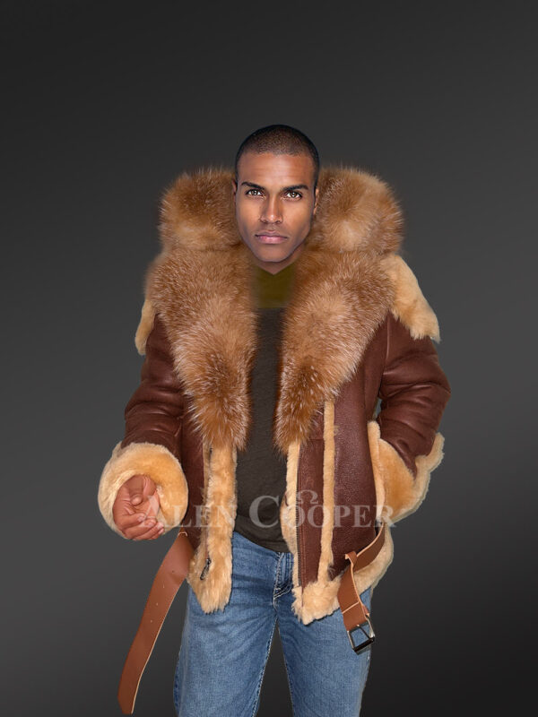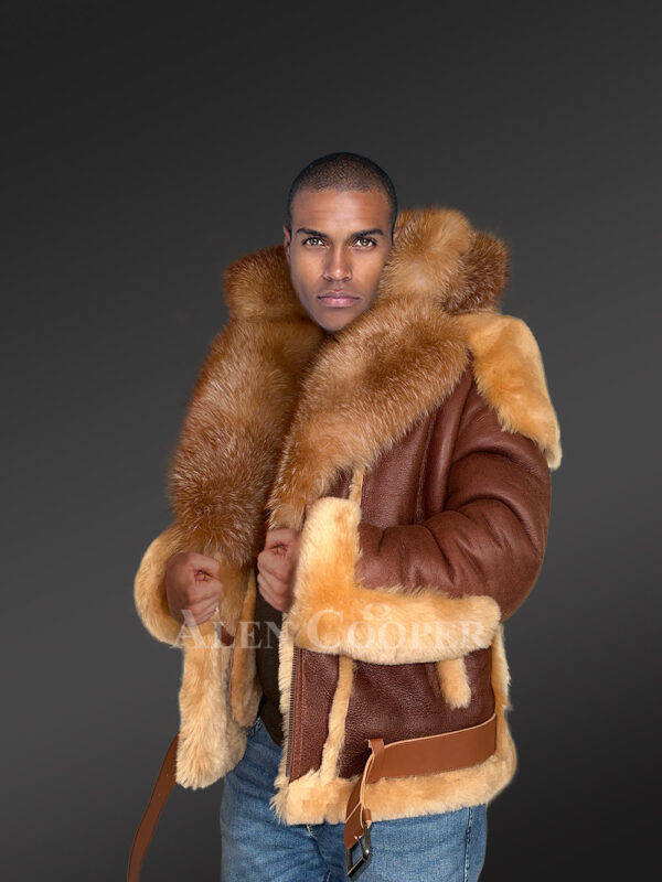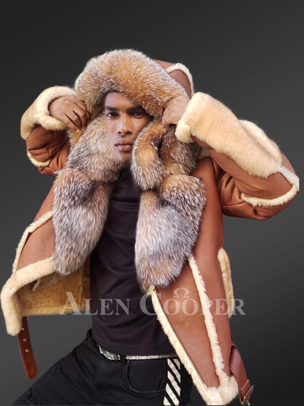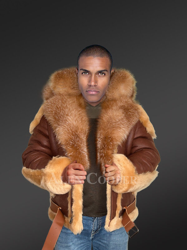 Mens Shearling Jacket with Fox Fur Accents – A Swanky Thermal Wear