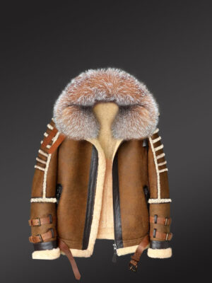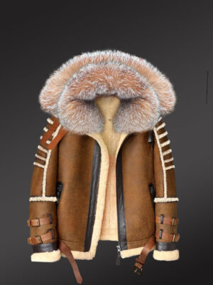 Mens Shearling Jacket with Fur Hood for Best Protection in Winter