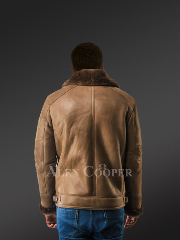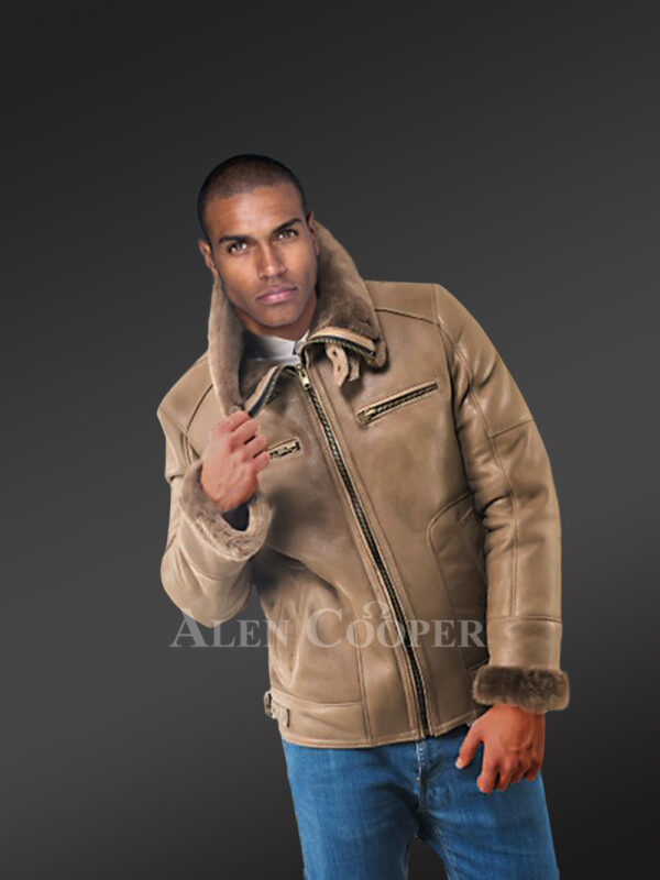 Men’s Tan Shearling Jacket with Collar Belt to Boost Your Appeal