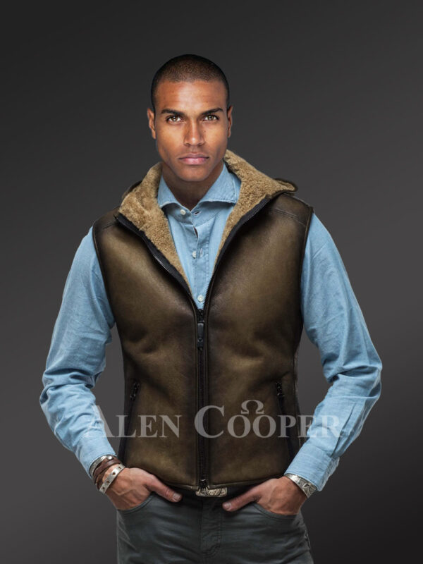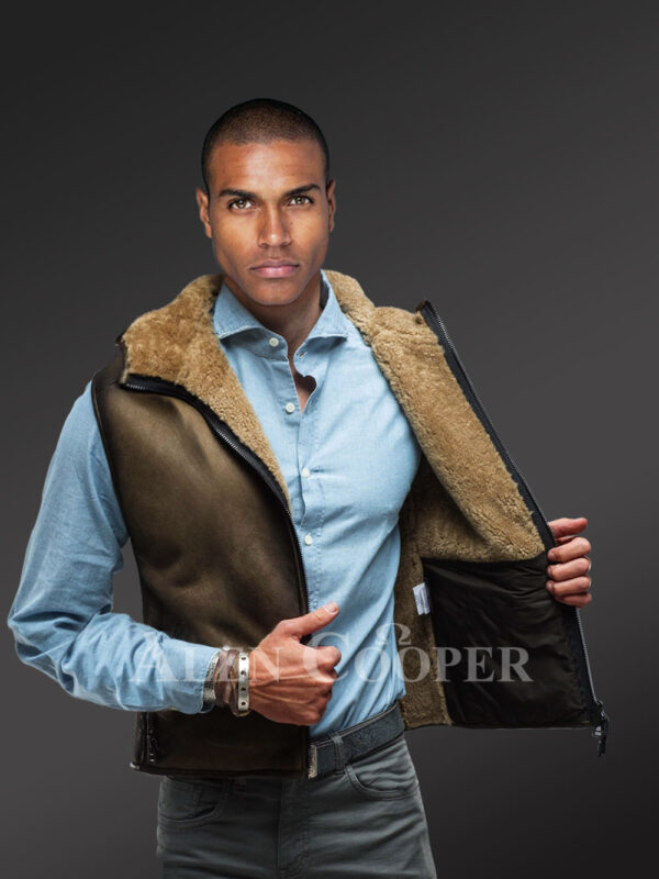 Rich Brown Sleeveless Shearling Jacket For Manlier You