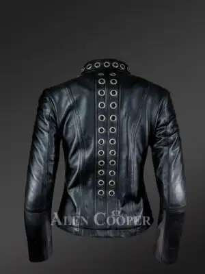 Spring Netted Black Leather Jacket Radiating Glamorous Oomph