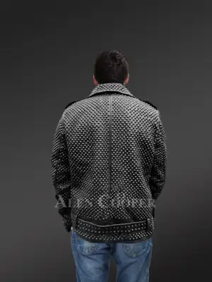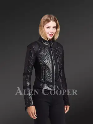 Women’s Black Moto Leather Jacket with Diamond Pattern
