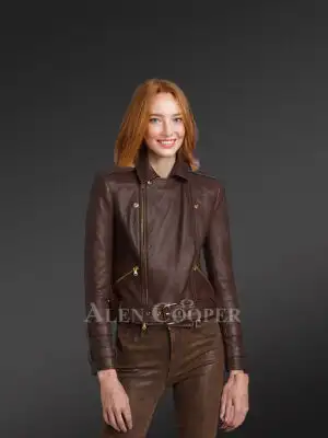 Womens Cropped Moto Leather Jacket Snugly Glowing Your Wintry Eventide