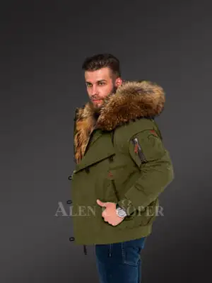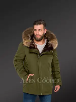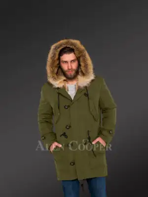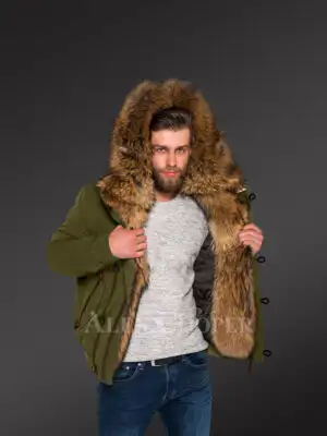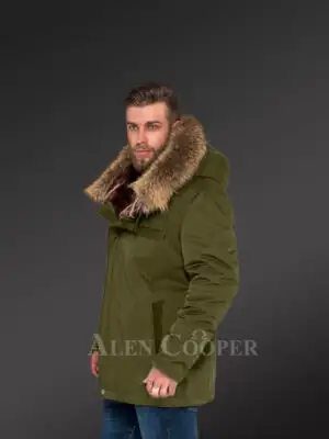 Improve Your Identity with Finn Raccoon Fur Hybrid Green Parka Convertibles for Men with Rabbit Liner