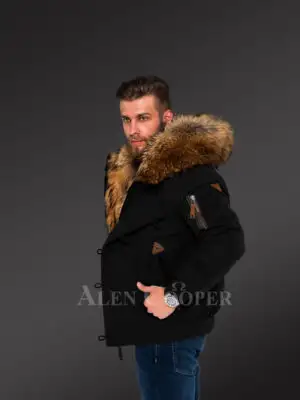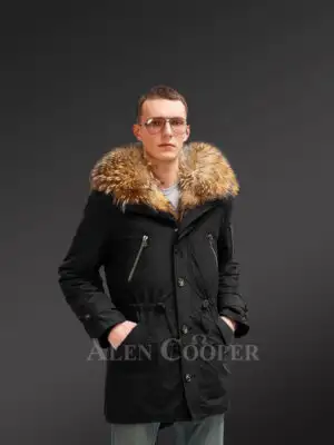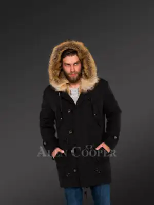 Blazing Fashion Trend with Men’s Hybrid Black Finn Raccoon Fur Parka Convertibles