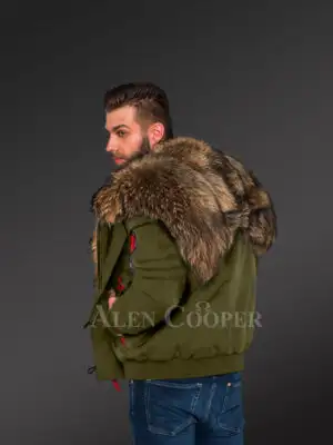 Men’s Hybrid Green Finn Raccoon Fur Parka Convertibles for Style and Elegance with Rabbit Liner
