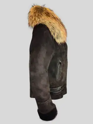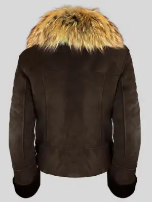 Real Shearling Jacket with Stylish Raccoon Fur Collar