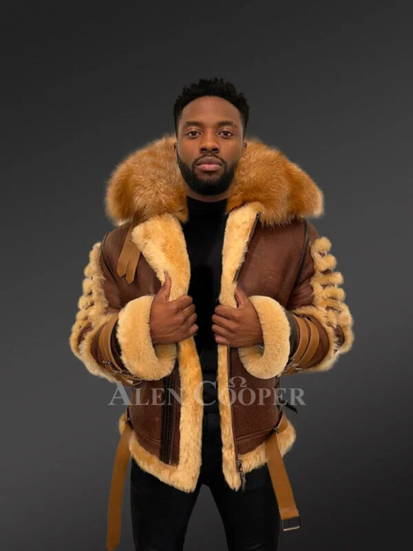 Mens Shearling Jacket with Fox Fur Accents – A Swanky Thermal Wear