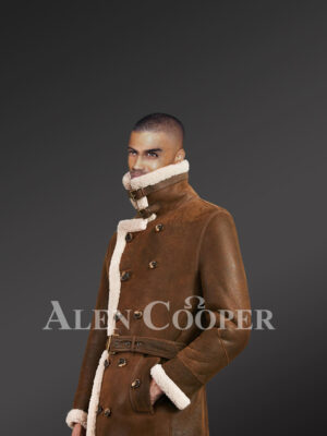 Mens Long Brown Shearling Coat for a High-Fashion Look