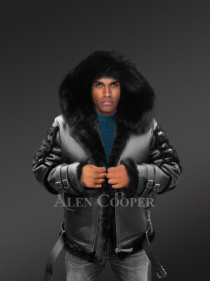 Mens Authentic Shearling Coat with Hood For Maximum Protection & Style