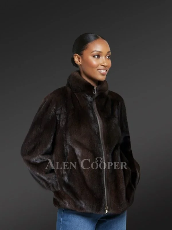 Womens Brown Mink Bomber – Chic Looks with Comforting Touch of Mink Fur