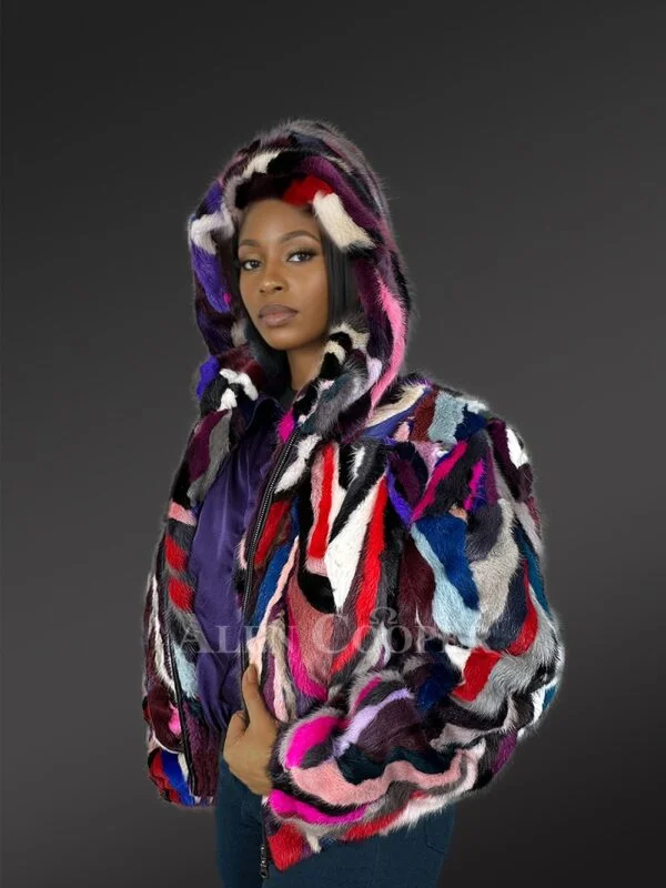 Mink Bomber Jacket with Hood –Look Elegant in this Pristine Jacket