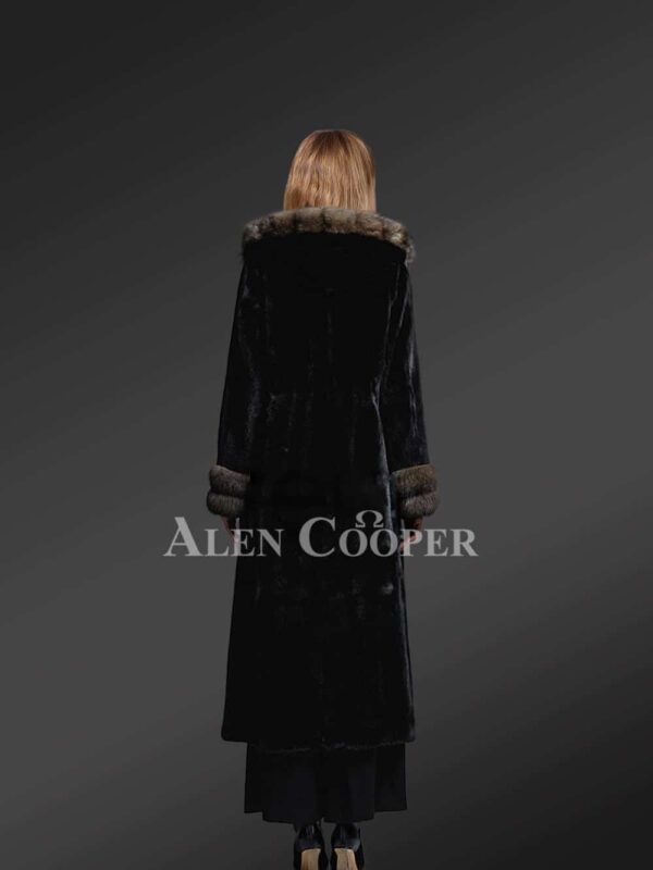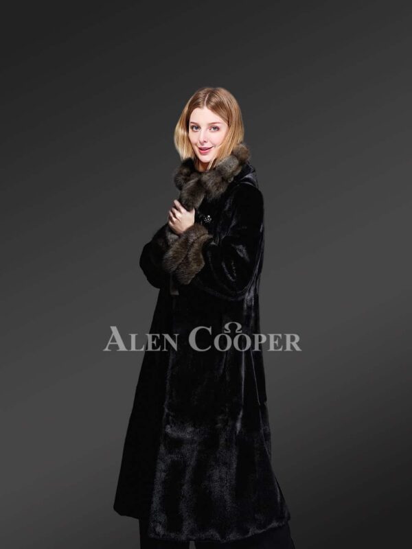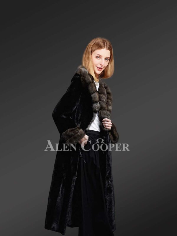 Hooded Mink Fur Long Coat With Sable Fur Collar And Cuffs