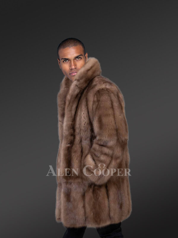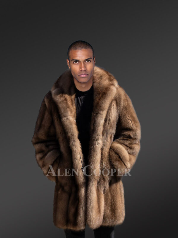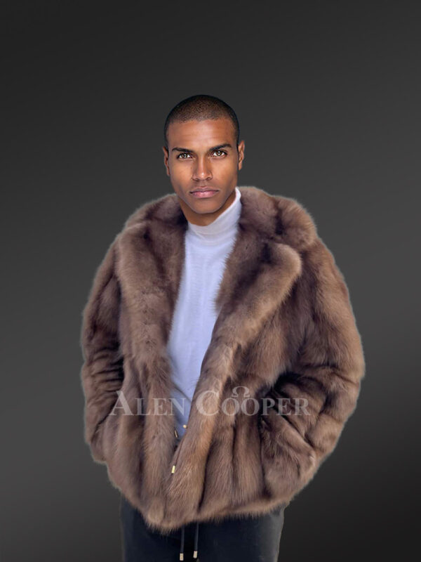 Men’s Trendy Short Sable Bomber Jacket in Natural Look