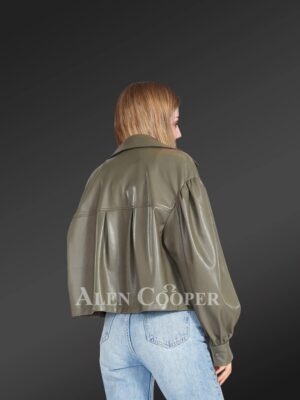 Genuine Leather Jackets in Grey for Tasteful Women with Straight Hemline