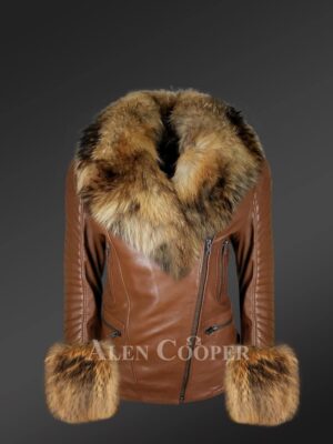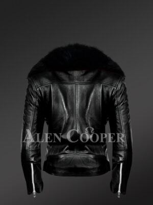 Womens Leather Biker Jacket with Detachable Finn Raccoon Fur Collar