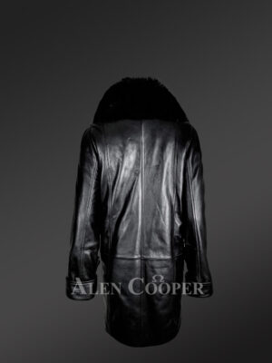 Womens Leather Overcoat with Clip out Fur Collar and Cuffs