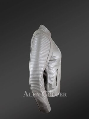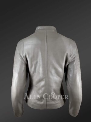 Womens Grey Leather Motorcycle Jacket with Zip Fastenerson Both Sides