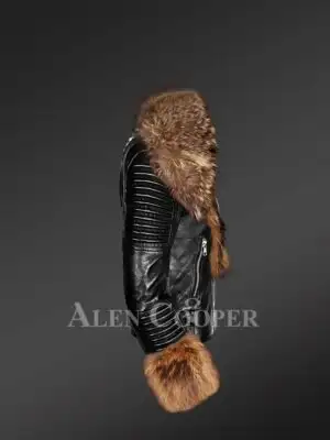 Leather Jacket with Fox Fur Sleeves– Fashion-Forward Design with Comfort