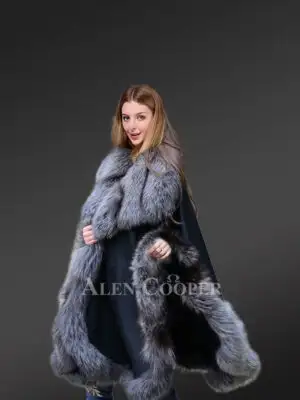 Leather Fur Cape with Silver Fox Fur Trims is a stylish & luxurious wear