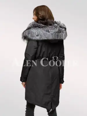 More Aristocratic and Graceful With Ladies’ Scandinavian Silver Fox Fur Hybrid Black Parka Convertibles with Black Rabbit Liner