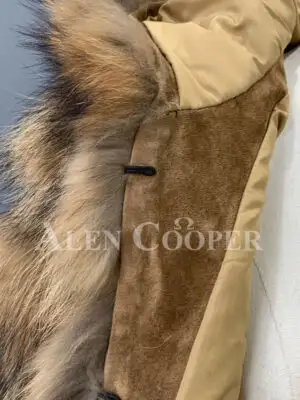 Womens Beige Raccoon Fur Parka– Elegance with Protection of Fur & Cotton