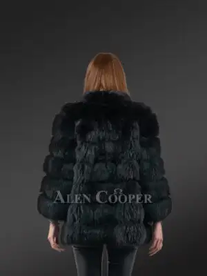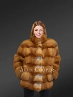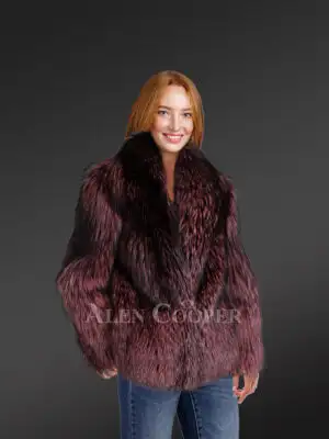 Womens Fox Fur Jacket in Wine Shade–A Statement Piece of Timeless Elegance