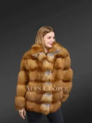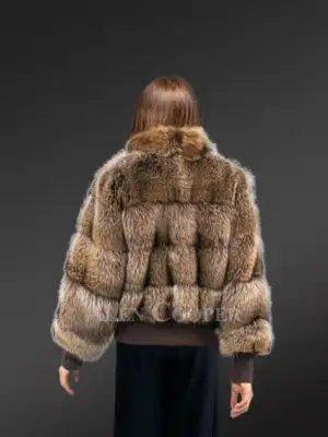 Womens Golden Fox Fur Short Jacket – Fashion-Forward Outfit for Winter